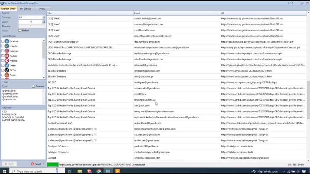 The fast email extractorl extracts emails from all social media sites like Facebook, Instagram, TikTok, YouTube, etc. and the fast email extractor can extract directly any website URL extract also software has an advanced feature in the software