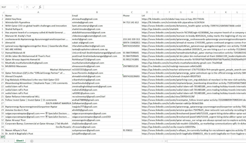 All done! Now just click the "export" button to export the data into an Excel sheet. You can filter your email list and start your email marketing today. With these simple steps, you can use our fast email extractor.