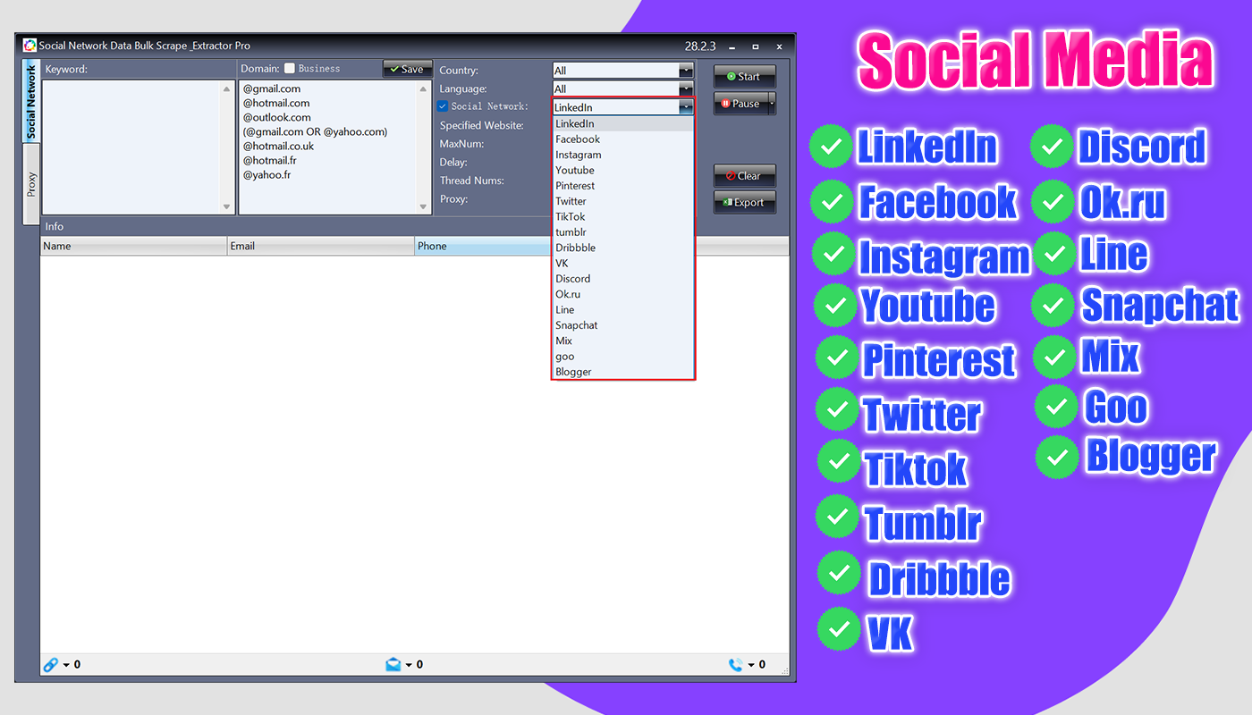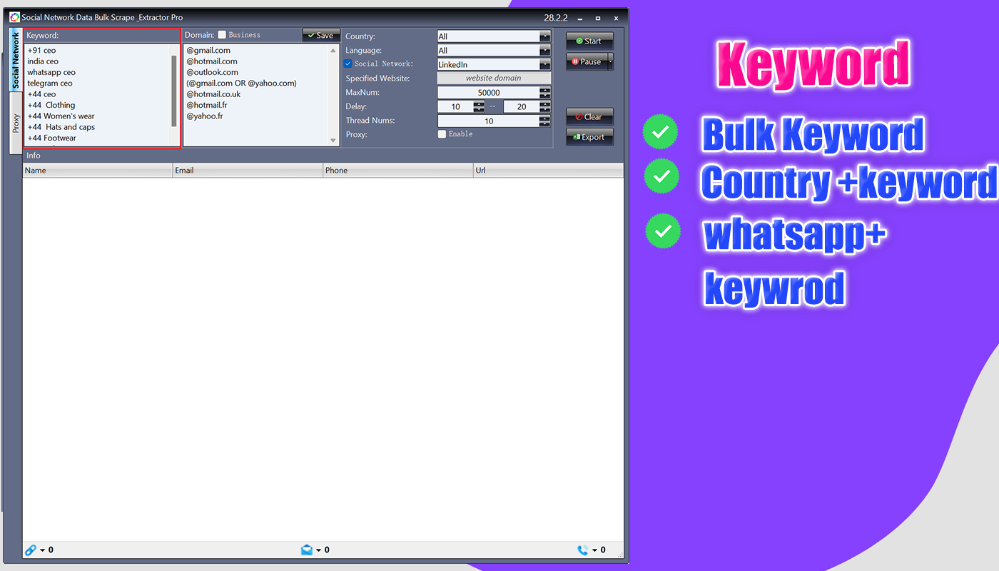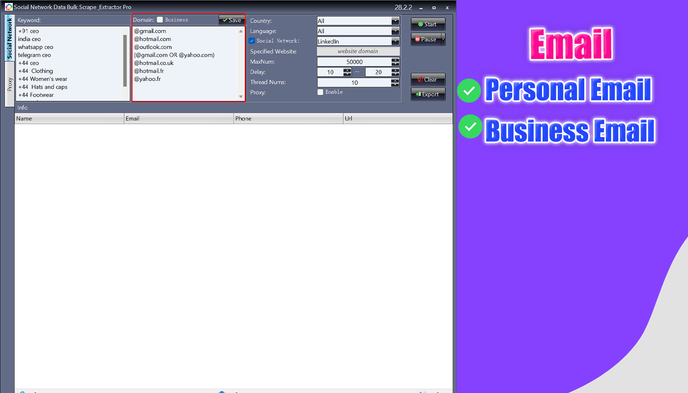 • Flexible Export Options: Save your gathered data into CSV or TXT formats for easy integration with your CRM or email marketing platforms.